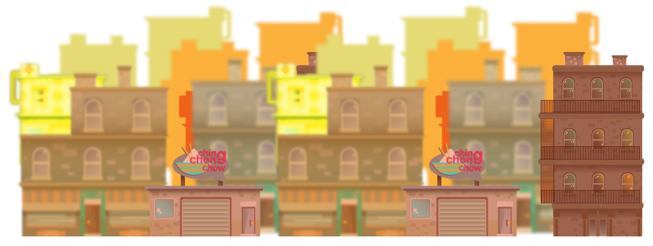 Introducing Pop Suey. The player plays as the hero Naiku, a young ninja in training under the guidance of general Chow. By making use of simple character designs from basic shapes and adding minimal detail, it gives the game a “oldschool” look.